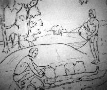 The culture of the mound builders, based in the Ohio Valley, was known to have spread to the Hopewell Indians of Western New York around 300 A.D. This artist's conception of an early burial mound is part of the Western Door Exhibit at the Rochester Museum and Science Center.